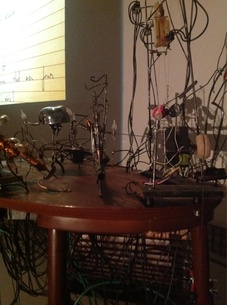 Hey! At the end of November we have speent one week in Paris, and we have participated to IRCAM’s forum workshop. We have heard the most wonderful sound system, met great guys of contemporary music, seen weird and gorgeous instruments made by these guys… And we have done 2 gigs in Paris, our first ones in France. So all in all we have stocked good vibes to affront this winter 2013. So one quote from Christian Blom, Norvegian composer and the guy who actually built this Al-Khowarizmis Mekaniske Orkester that you see on the picture: “I am not interesting, this instrument is”. Check the orkester in action on youtube videos! Doesn’t it remind you of E.T.? Yours, FK.